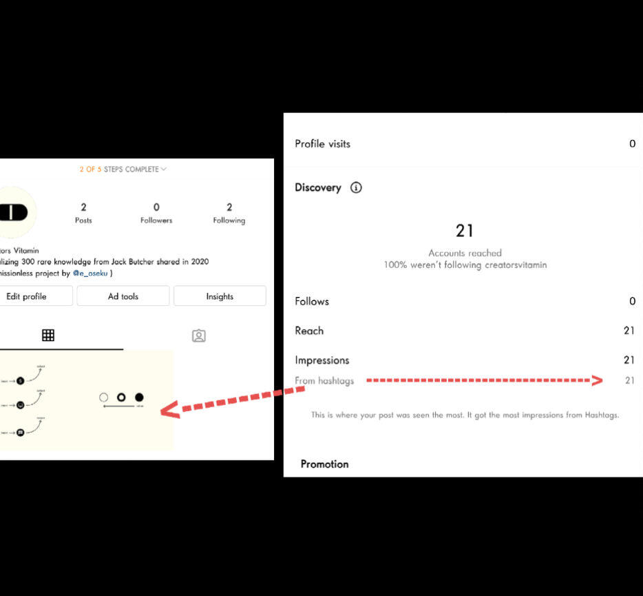 Actually, I placed myself in Peter's shoes when I started Creators Vitamin on instagram. I relied only on hashtags and good content as a means to grow the account. This is the analytics for my first post when I had zero followers.