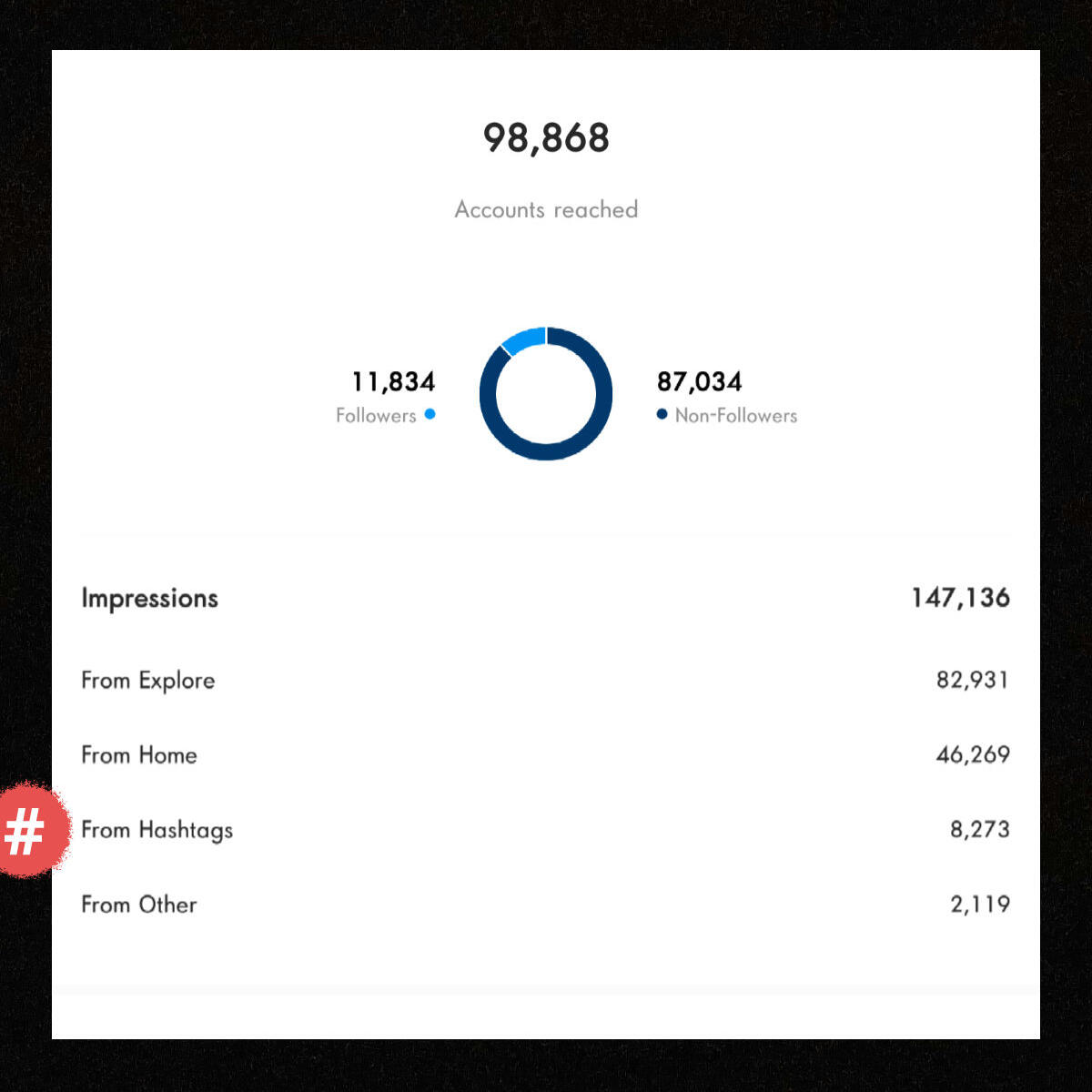 Impressions from hashtags is an organic and trustworthy way to reach non followers and customers. Because hashtags improve in performance overtime, the traffic generated in 2 months will be worth more than $1500 if you were to run Ads for it.You find good hashtags once, then use them forever.