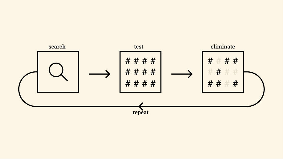 We'll use an experiment-first approach. There is no one size fits all. This process will help you find hashtags specific to what you do;